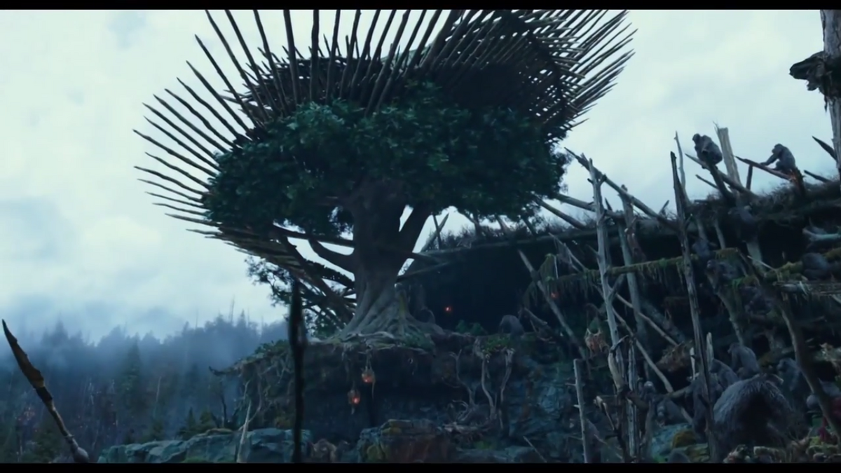 According to Cinemablend, director Matt Reeves shot this film with 3D in mind and even used native 3D cameras. As far as native 3D films go, this one tends to be on the slightly shallower end of the spectrum. But none the less, the movie is fantastic at capturing all the little details that make up the post-pandemic world of Dawn. To let you know this film was made with 3D in mind, the first shot of the film is a tracking shot focusing on a series of orange lines coming up from and surrounding a globe, indicating how fast the pandemic has spread, all while news clips are playing in the background and can only be seen behind the continents. This shot looks average in 2D. But in 3D, it's simply mesmerizing. I think that's the best way to describe most of this film's look. It works well in 2D, but the 3D makes it more interesting to watch. And right after that, we then get an intimidating close up of Caesar's face as he stares right at us as the camera zooms out, once again using the 3D to make the film feel all the more immersive and intense.